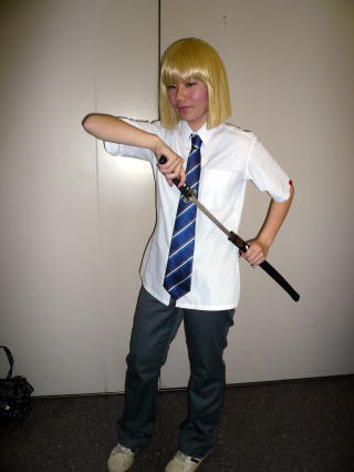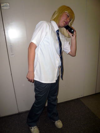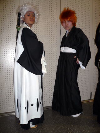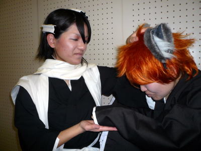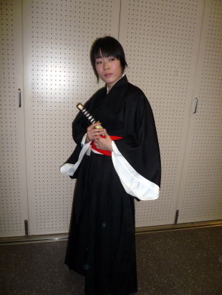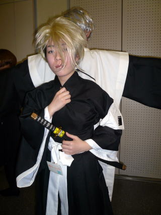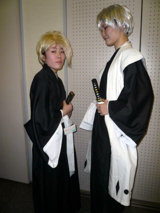 ↑ 黒崎一護:あぴゅまちゃん 私服の時のかわいい雰囲気が、衣装を着るとがらっと変わるあぴゅまちゃん。 かっこいい一護ににんまり( ̄ー ̄) でも、しゃべるとやっぱりかわいいのですw ↓ 市丸ギン:高原ミヤちゃん 当日いきなり無理言ってギンやってもらいました。 会場で衣装一式貸し付けて(悪 だって、こんなにもカッコいいんだモノ・・・。 |