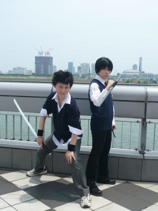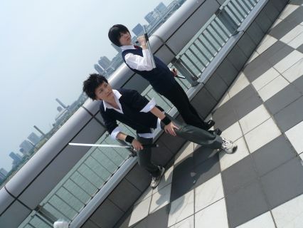 ↑← 山本武:高原ミヤちゃん 雲雀恭弥:飛桜遥斗さん ミヤちゃんの山本と飛桜さんの雲雀さんと 二人ともかっこいいから2倍お得な1枚v ↑ 朽木白哉:哉衣ちゃん 黒崎一護:あぴゅまちゃん 単行本19巻の辺りの再現の二人。 二人とも笑顔がかわいいから、シリアス撮るの大変そうでしたw ← アニス: 常盤木ひるい ナタリア:栞野羽月 TOAおんにゃのこ併せです!うづきさん手縫いです! やれとゲーム渡した甲斐がありました(ホロリ |