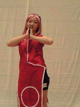 | ↑ 春野サクラ:栞野羽月 再不斬:高原ミヤちゃん うずまきナルト:あぴゅまちゃん 白:常盤木ひるい やりました。やってしまいました。初期ナルト併せ!! 単行本3,4巻辺りです ↓ 2年ぶりに引っ張り出されたという衣装。 紅一点なサクラちゃんらしく、かわいいのです。 |
