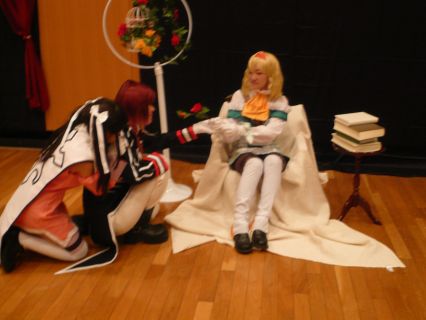 ↑← ルーク:逢幸紫弦さま ナタリア:栞野羽月 アニス:常盤木ひるい キムラスカ王族二人と導師守護役。 高貴な方々と庶民の差を感じる・・・。 ↑ アニスは自重しない ← 姫はどんな時も優雅に |